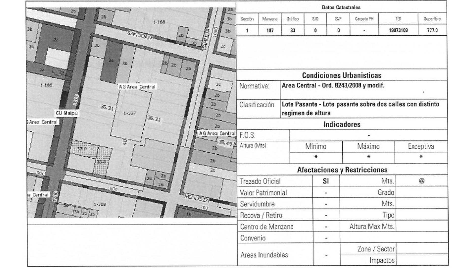 *SOBRE CALLE MAIPU 13,32M DE FRENTE X 29,43 DE FONDO
